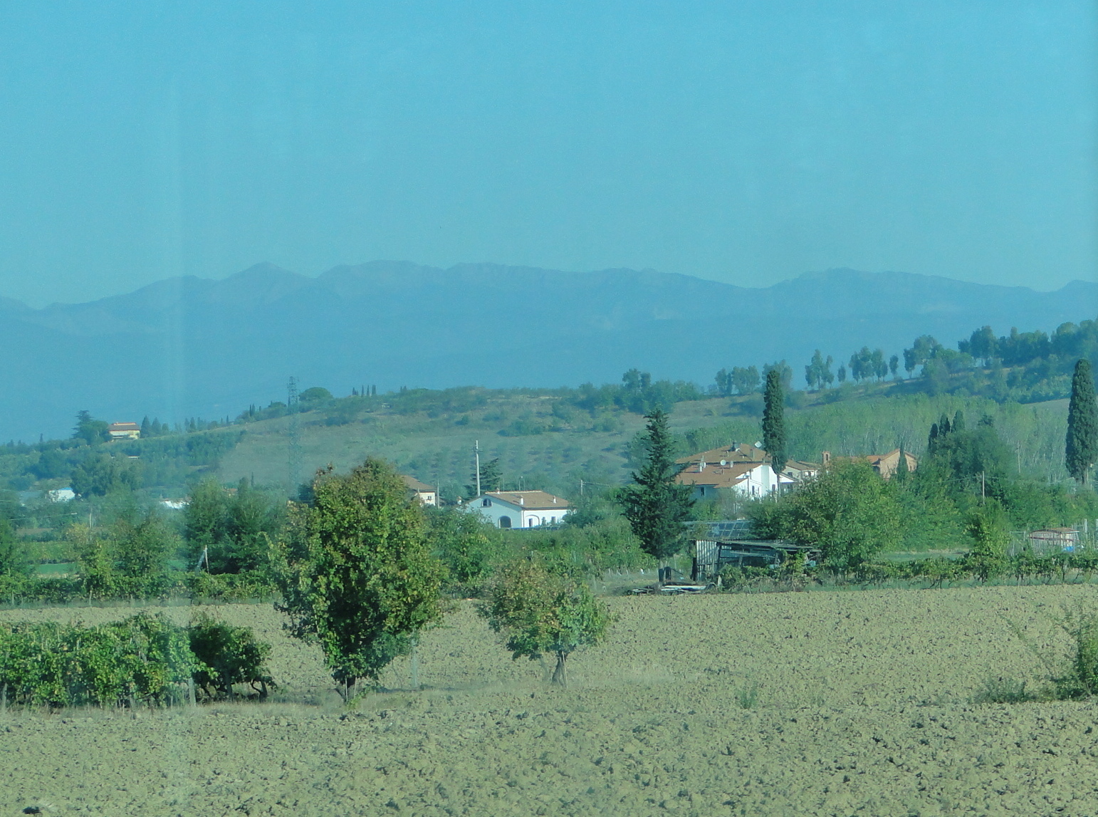 There were some pretty spots, looking like the typical Tuscan countryside that we always think of--with tall cyprus trees, red roofed villas and vineyards. But most of it was just rolling green hills or farmland. Going thru the small villages and towns--well, the prettiest areas of town are NOT usually at the train station!